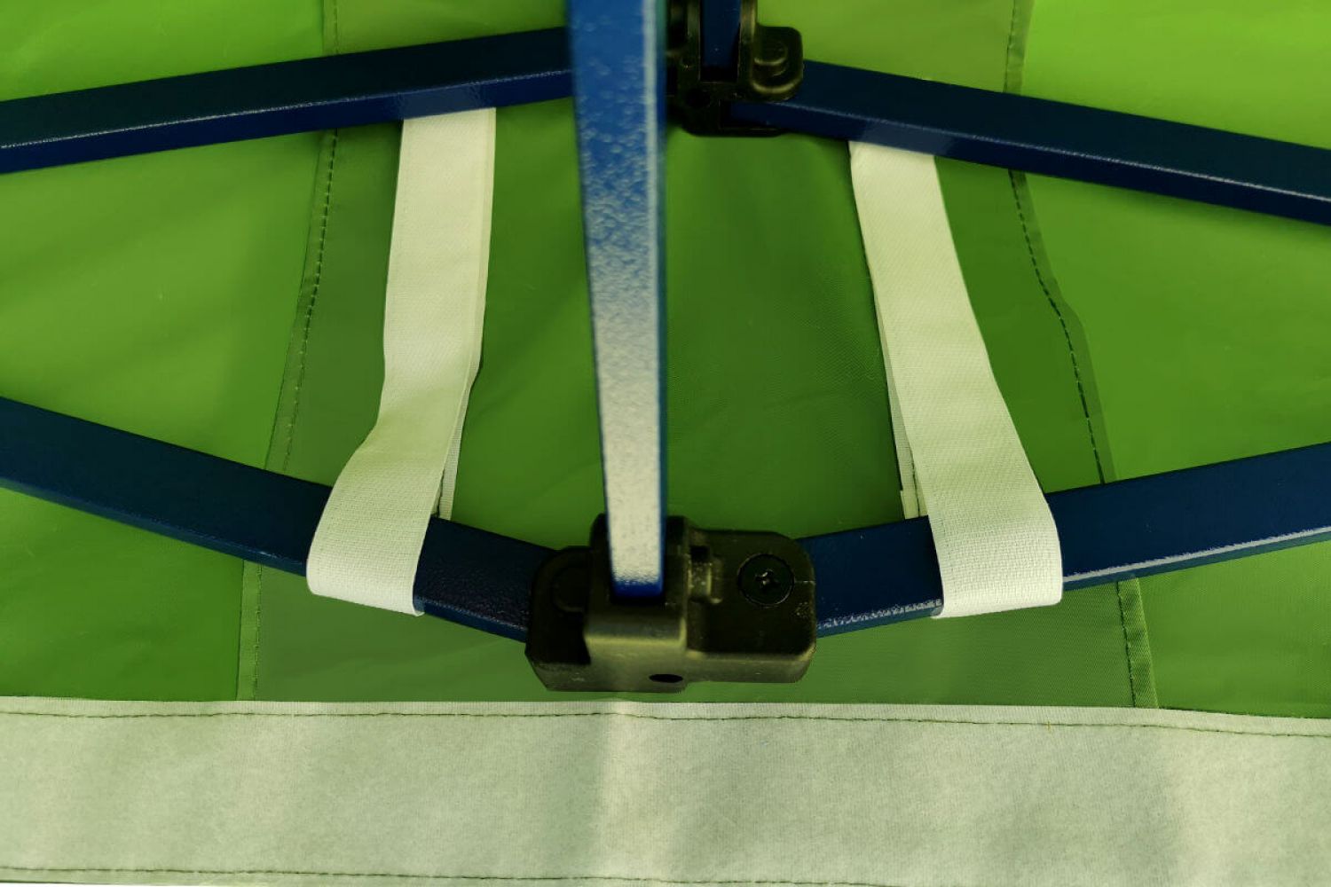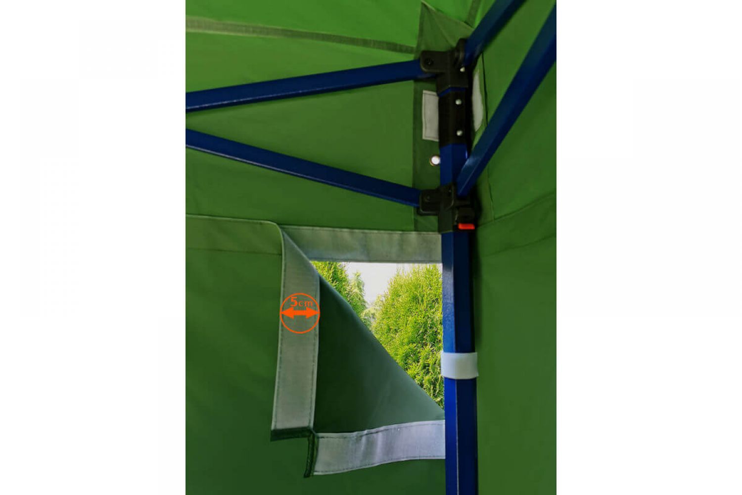 Jumts un sāni ir izturīgi pret UV starojumu, nodilumu un plīsumiem. Telts audums piedāvā 100% hidroizolāciju, tāpēc mainīgos laikapstākļos nav jāuztraucas. Lietus vairs neierobežos.